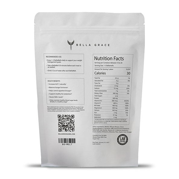BellaMelt is an indulgent caramel treat powered by potent botanicals and essential nutrients. Each sugar-free melt works naturally with your body to activate GLP-1, helping you feel full faster, stay satisfied, quiet cravings, and burn more calories.